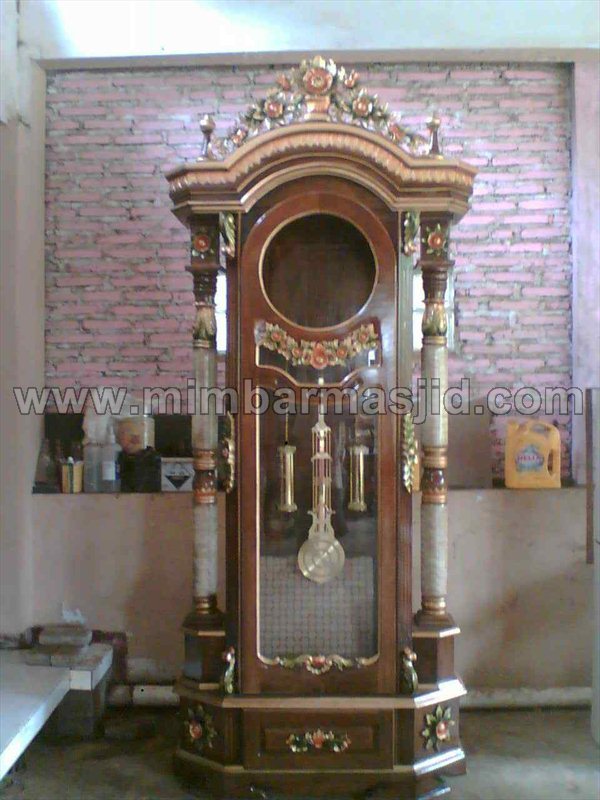 Jam Hias Mawar Kayu Jati ini mempunyai ukiran bermotif bunga mawar yang sangat cantik. Sehingga membuat Jam Hias Mawar Kayu Jati ini terlihat elagan dan juga mewah. Jam Hias Mawar Kayu Jati memiliki dua tiang penyangga yang mengapit jam dan tiang tersebut terbuat dari kramik cantik yang menambah indah produk ini.