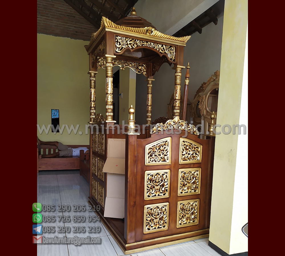 Jual Mimbar Masjid Jati Terbaru model atap kubah jepara dari kayu jati berkualitasdengan harga murah. Dan anda bisa memesannya secara online yang mudah, aman dan terpercaya. Tentu saja untuk pememesanan secara online sangat mudah, aman dan terpercaya dengan cukup menghubungi customer servise yang tersedia.