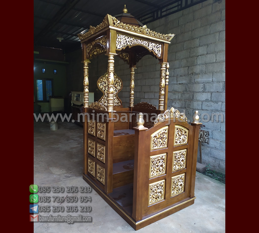 Jual Mimbar Masjid Terbaru model atap kubah jepara dari kayu jati berkualitasdengan harga murah. Dan anda bisa memesannya secara online yang mudah, aman dan terpercaya. Tentu saja untuk pememesanan secara online sangat mudah, aman dan terpercaya dengan cukup menghubungi customer servise yang tersedia.