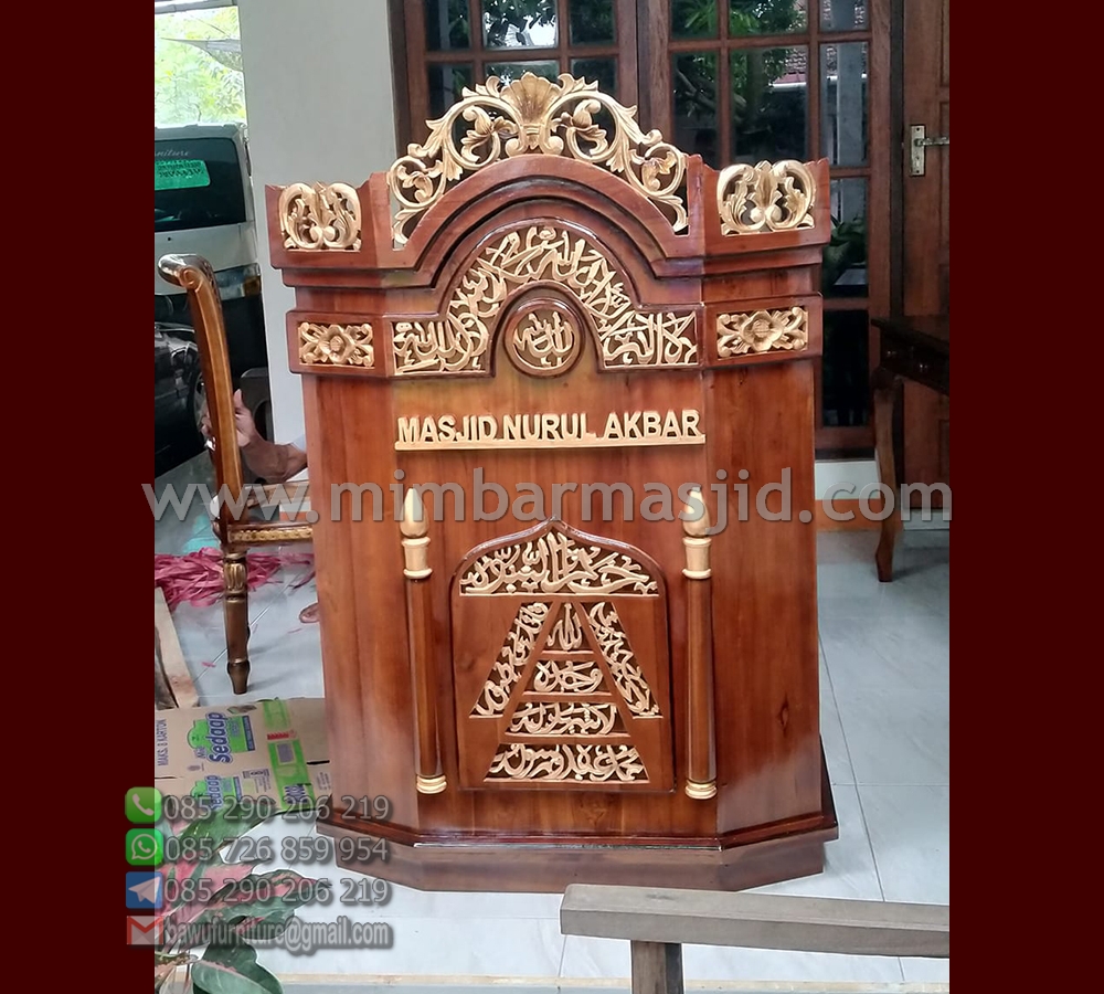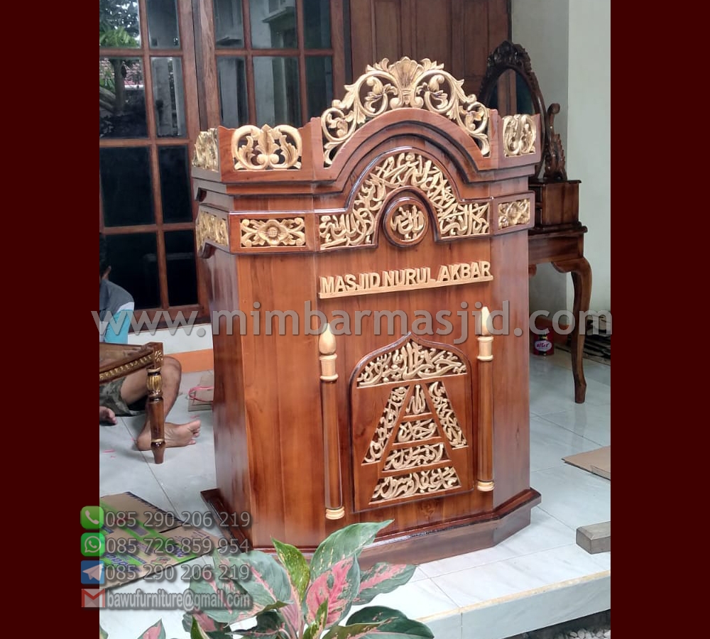Jual Podium Masjid Nurul Akbar dari kayu jati pilihan hasil tangan pengerajin profesional dengan harga murah. Dan anda bisa memesannya secara online yang mudah, aman dan terpercaya. Tentu saja untuk pememesanan secara online sangat mudah, aman dan terpercaya dengan cukup menghubungi customer servise yang tersedia.